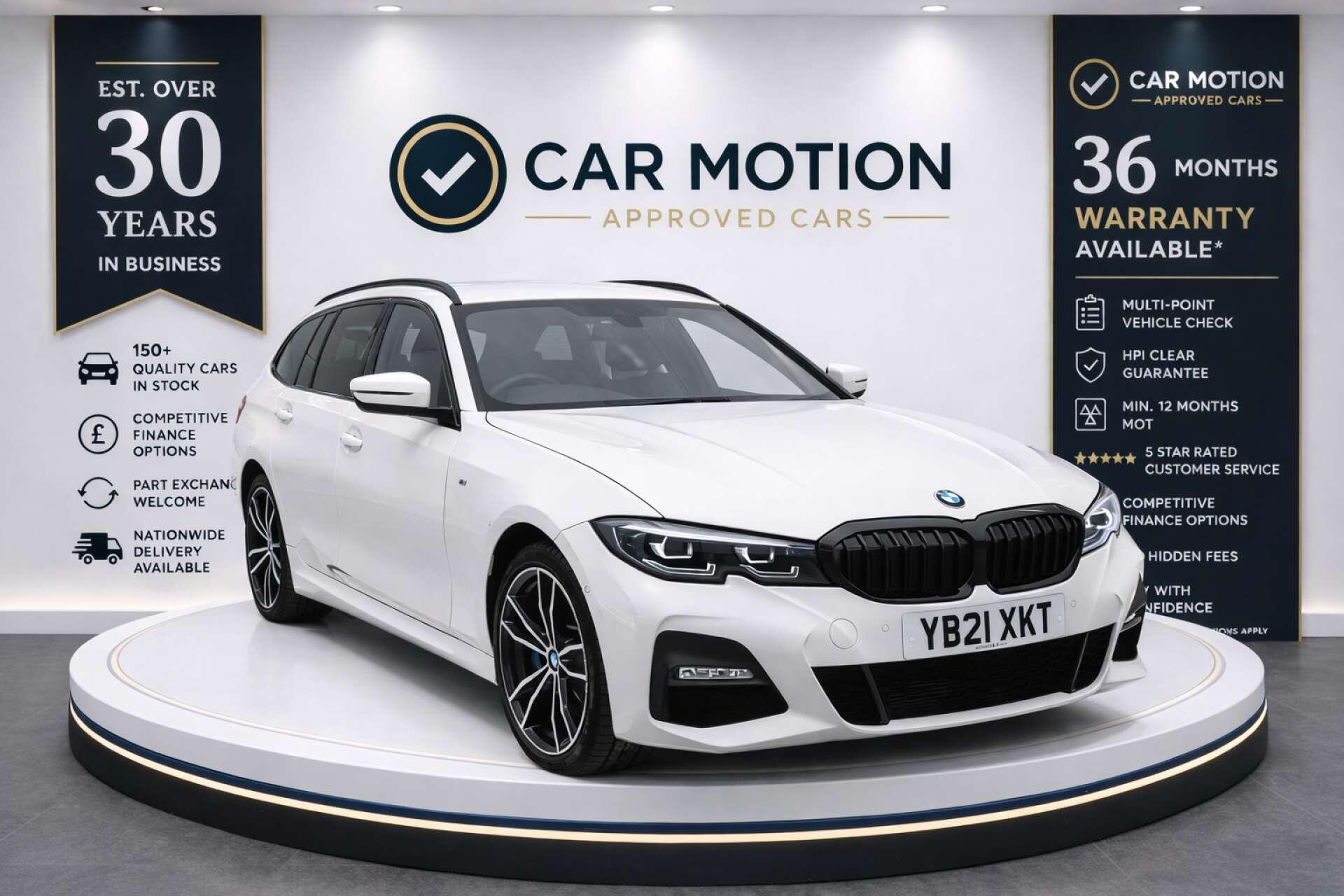Find Your Perfect Drive with Car motion – Where Quality Meets Excellence At Car motion, we do far more than simply sell cars — we deliver quality, confidence, and a customer experience designed to stand above the rest. From the moment you arrive, you’ll discover a professional, welcoming, and award-winning team committed to making your next car purchase enjoyable, straightforward, and completely tailored to you. Proudly recognised with the AutoTrader Retailer Awards 2025 People and Culture Award, chosen from nearly 14,000 UK retailers, we are honoured to be acknowledged for putting people first and delivering the highest standards at every stage of the customer journey. Combined with our outstanding reviews on Google and AutoTrader, this recognition reflects the trust our customers place in us and the pride we take in every vehicle we offer. Every car at Car motion is carefully selected, meticulously inspected, and expertly prepared to an exceptionally high standard, giving you complete confidence when you choose to buy from us. Whether you are looking for quality, value, reliability, or simply a better way to buy your next car, you will find it here. We are proud to present another superb example from our premium selection and warmly invite you to come and see for yourself the quality, presentation, and attention to detail that make Car motion different. This 2021 BMW 330e M Sport is a superb example, having had only one owner since new. This four wheel drive plug in hybrid model boasts a 2.0 litre petrol engine and meets Euro 6 emission standards. It comes equipped with the desirable M Sport Pro Package, enhancing its already sporty appeal. For effortless manoeuvring, it features both Park Distance Control for the front and rear, and a comprehensive Parking Assistant system that includes front and rear sensors, along with a rear camera. Inside, you'll find the advanced BMW Live Cockpit Professional, complete with Bluetooth connectivity, and a Bluetooth Hands Free system with USB Audio Interface for seamless audio streaming and calls. Experience exhilarating performance with this 330e M Sport, capable of accelerating from 0 to 62 miles per hour in just 5.9 seconds. This impressive acceleration, combined with its plug in hybrid technology and four wheel drive system, sets it apart from many other vehicles in its class, offering a dynamic and efficient driving experience. The M Sport trim and M Sport Pro Package further underscore its sporting credentials, ensuring an engaging drive for any enthusiast. Flexible finance available, including no deposit options for eligible customers. At Car motion, we make buying your next car simple, straightforward and stress-free, with tailored finance packages, competitive rates, quick decisions and clear, honest advice throughout. Why buy from Car motion? Every vehicle is carefully selected, thoroughly inspected through our 127-point quality check, and prepared to an exceptionally high standard for complete peace of mind. We offer up to 3 years Car motion Approved Warranty, the best possible part exchange prices, and all of our vehicles are price checked daily to ensure outstanding value and competitiveness. With our Condition Assurance Guarantee, part exchange welcome, and a friendly, experienced team on hand to help, you can buy with complete confidence. From your first enquiry to collection day, we are committed to delivering the highest levels of service, presentation and customer care. Visit Car motion today and discover why so many customers choose us for quality vehicles, trusted service and complete confidence in every purchase.